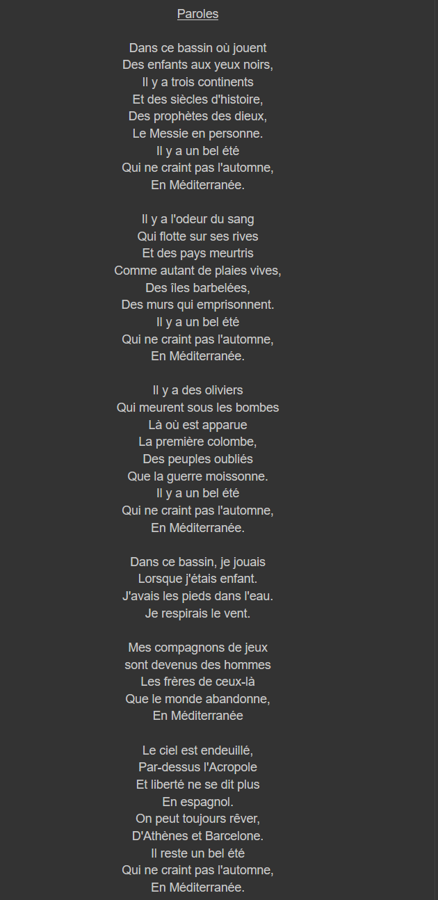 Et Pourtant dans le monde / Il est trop tard / En Méditerranée /